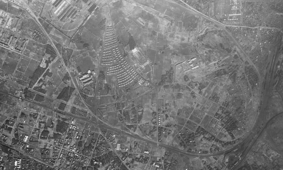デルタ線と引込線群の写る空中写真。線形の書き込み写真は記事の下の方に掲載。