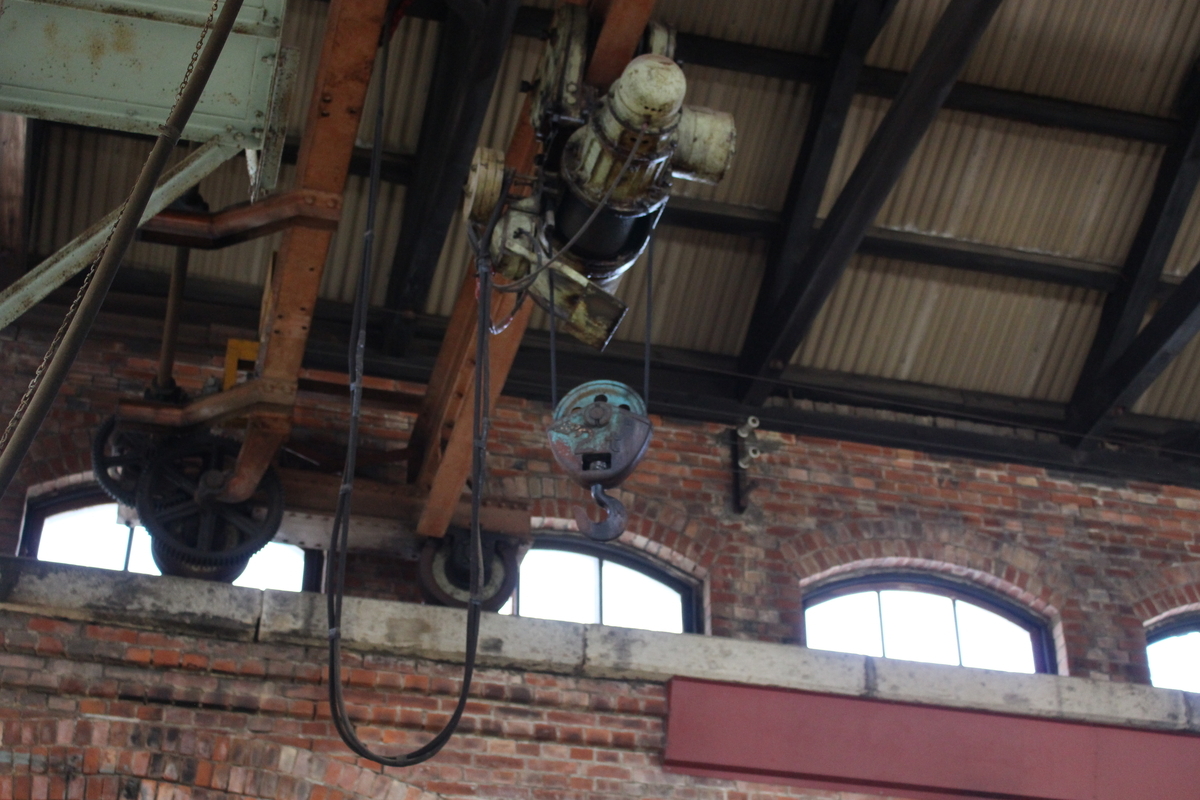 対して、ホイストが載っている両サイドのレールは明治時代のものらしいのですが、ちょうどアーチ部があり見えませんでした。