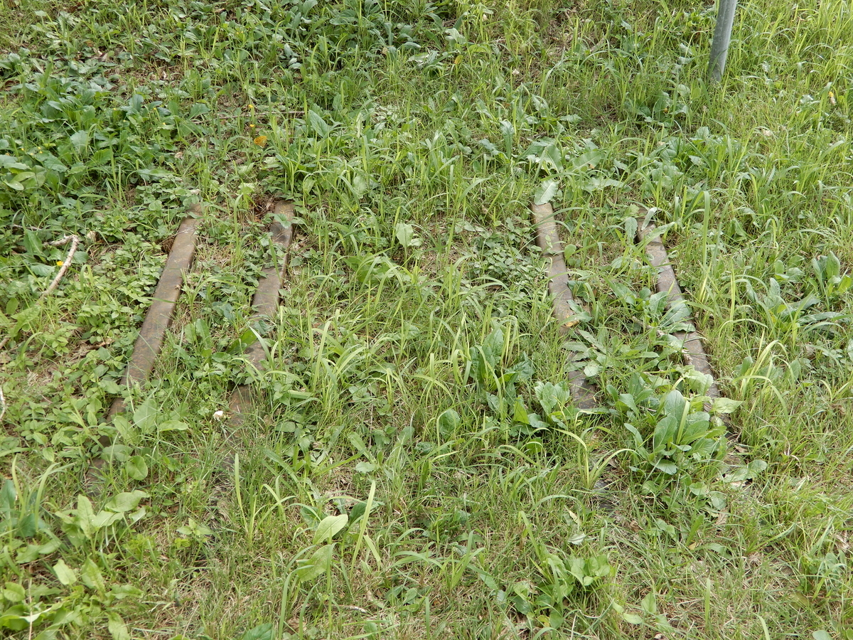 外に戻り、残されている線路を見てきました。2か所あり、1ヶ所目は狭軌(1,067mm)のみ、2ヶ所目は軽便軌(600mm)と狭軌の4線軌条となっています。